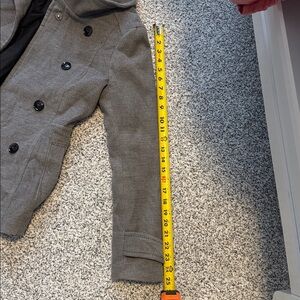 Chic and cozy charcoal pea coat. Features double-breasted design. Ideal for versatile styling. Pit to pit 18” length 25”