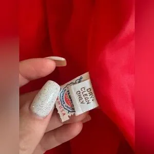 A knockout vintage piece from iconic American designer Lilli Ann. This vivid true-red blazer dates to the 1980s and channels classic 1940s tailoring with its strong shoulders, sculpted waist, and elegant asymmetrical draping across the front. A single oversized statement button at the waist gives it that dramatic, old-Hollywood power silhouette. Made of a wool, or wool blend. Has no size tags - see measurements in photos for best fit - between a medium and large. Overall in good vintage condition - has some minor loose threads on the front next to the button that is concealed when the blazer is closed. The perfect holiday top!