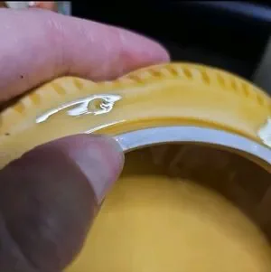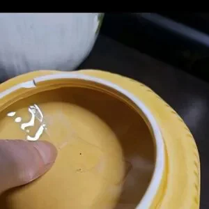 larger of the 2 is in great condition. some cracks in the glaze but none in the ceramic. small little chip on under side rim, pictured, of the big one.
