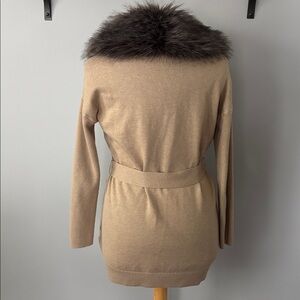 Banana Republic Tan Knit Open Cardigan Sweater with Removable Faux Fur Trim