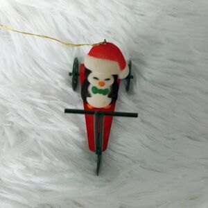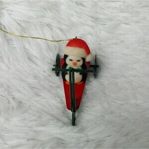 Vintage 80s Avon Jolly Penguin On Scooter with Santa Hat Christmas Ornament