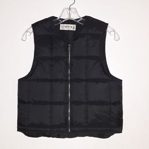 Black puffer vest. Zippers down. Warm and cozy it's a great winter basic piece. Slightly longer on the back then the front. Pre-owned in excellent condition. Good Quality. Made in Italy.