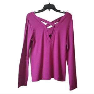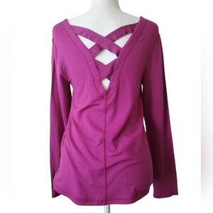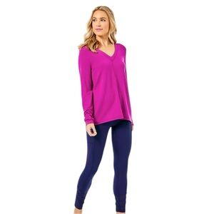 NWOT Lilly Pulitzer Luxletic Areli Bordeaux Berry Criss Cross L/S V-Neck Top