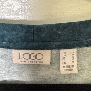 Gorgeous LOGO by Lori Goldstein button-front cardigan in a rich teal mineral-wash shade. Soft, stretchy, ultra-flattering drape with an asymmetric hem and chiffon trim that gives that signature LOGO layered look. Lightweight and flowy with functional pockets and natural-shell style buttons. Such a beautiful everyday piece that works year-round.