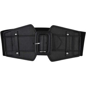 Features: Crafted from durable PU leather and elastic for a comfy fit. Features a vintage-style buckle that’s easy to fasten with hook closure. Wide enough to accentuate your waist, giving you a sleek, elegant silhouette. Versatile for daily casual wear or dressing up for evenings.