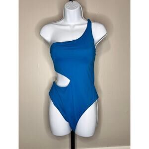 NWT Aqua Swim Cutout One Shoulder One Piece Swimsuit Pull-On Blue Women's L