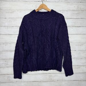 Everlane Merino Wool Blend Cloud Cable Knit Crew Sweater Ink Purple Size Medium