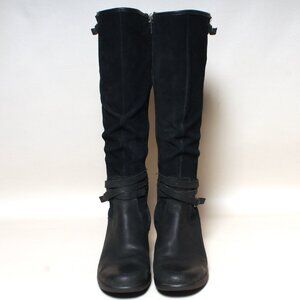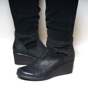 Womens Ugg Boots Lesley Sz 9 Black Leather Waterproof Wedge Heel Knee High Boot