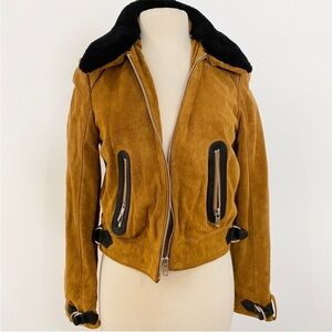 Maje genuine suede leather aviator jacket with removable collar BLOGGER FAVORITE