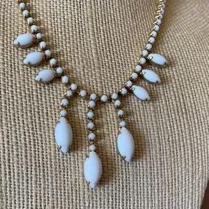 Vintage White Milk Glass Rhinestone Necklace