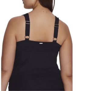 Keep your pool party look sophisticated and chic with this pretty plus size tankini from Anne Cole, a sleek solid design accented by a flattering front twist and supportive underwire.