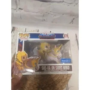 The product is a Funko POP vinyl figure of She-Ra on Swift Wind, exclusive to Walmart. This collectible item is part of the POP Masters Of The Universe collection, featuring the character from the popular TV show and franchise. Packaged in original packaging, this modern figure is a must-have for fans and collectors looking to add a unique piece to their collection. Made of high-quality vinyl and featuring intricate details, this exclusive piece is sure to stand out in any collection.