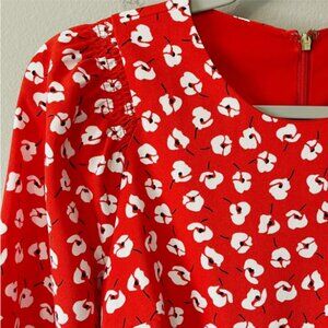 Draper James Fit and Flare 3/4 Sleeve Mini Dress Poppy Floral Red Size 8 EUC