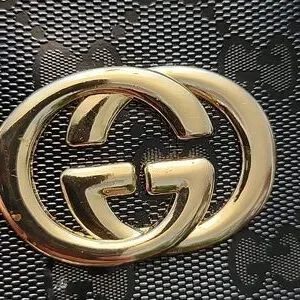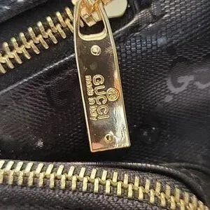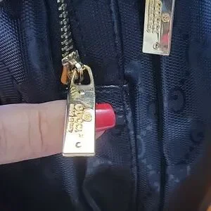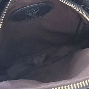 Inspired Elegant crossbody bag in black with signature red and green strap. Features gold-tone metal logo. vinyl material. almost new