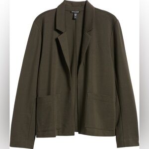 Eileen Fisher Dark Olive Notched Lapel Ponte Open Front Sustainable Blazer XS