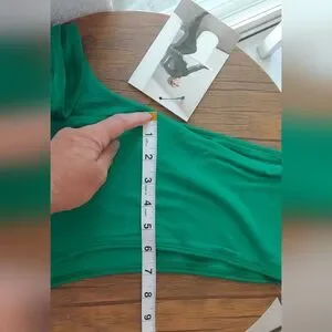 Naked Wardrobe Green Smooth Side Asymmetrical Crop Top NWT