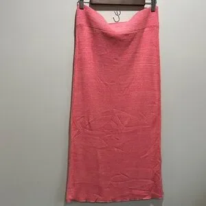 Stylish coral midi skirt by Free People. Features a sleek silhouette and side slit.