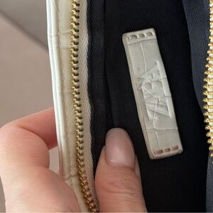 Zara Cream Croc-Embossed Shoulder Bag with Gold Chain