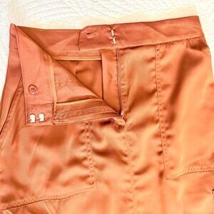 House of Harlow Brown Satin Cargo Midi Skirt Size Small