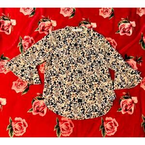 ASTR The Label Blouse Women’s Medium Blue Multi Leopard Cheetah Bell Sleeve