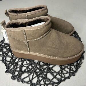 ❌SOLD❌NWT- CUSHIONAIRE Hippy Platform Ankle Boots Size 10 Genuine Suede - TAUPE