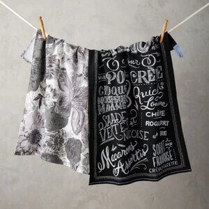 NWOT Anthropologie Bistro Menu Tea Towel Set Chalkboard Floral