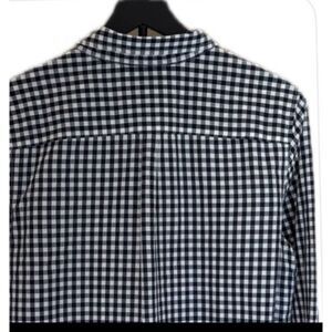 Talbots Black & White Gingham Button-Up Shirt Long Sleeve with Sleeve Tabs L