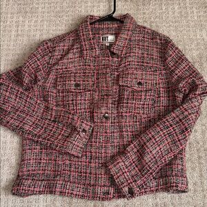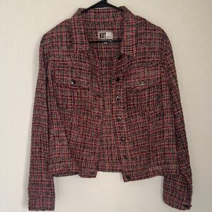 Kut from the Kloth pink tweed moto snap jacket size Large