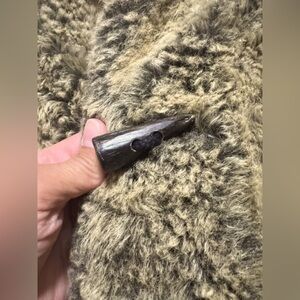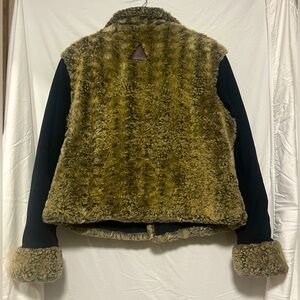 Reversible faux fur / black coat. Intricate button detail, cozy faux fur lining, cuffed sleeves can be rolled down completely. It’s STUNNING.