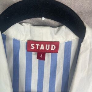 STAUD Cotton Poplin Stripe Faux Wrap Maxi Dress In Blue Women's Size 4