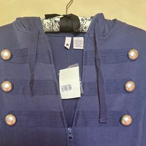Step out in style with this navy blue jacket, featuring striking button accents. A perfect blend of fashion and comfort for any occasion.NWT. Non smoking home .fast shipping