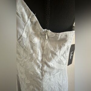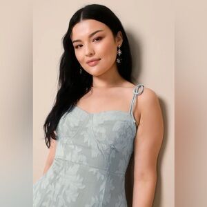 NWT Lulus Loveliest Looks Dusty Blue Floral Jacquard Tie Strap Dress Size XLarge
