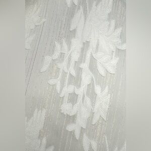 Arrive looking like the guest of honor in this dress. Woven jacquard fabric, with metallic silver threading and a floral design shapes this dress that has tying straps and a sweetheart neckline. Bustier style seaming accents the bodice a top a midi skirt with a front slit. Smocking at back for fit. Hidden side zipper and clasp closure.