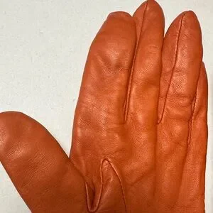 Add a pop of color to your outfit with these elegant orange leather gloves. Perfect for any occasion. Warm with thin elegant wool lining