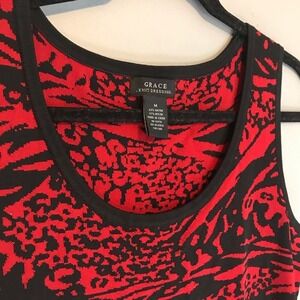 Grace Knit Print Dress Red/Black Stretch Size M