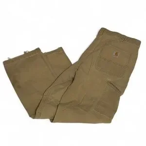 Rugged Carhartt cargo pants. Ideal for work or casual wear. Features multiple pockets. Carhartt brown relaxed fit carpenter pants Size 36" #workwear #carpenter