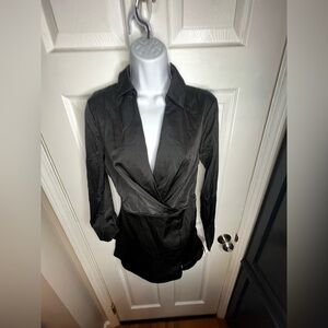 NWT Lulus Women’s X Small Sophisticated Effort Black Long Sleeve Satin Romper XS