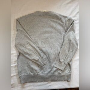 Comfortable gray crewneck featuring a colorful Pluto graphic. Ideal for casual wear.