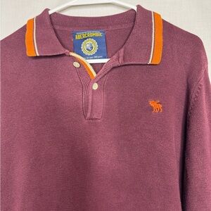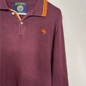 Vintage Y2K Abercrombie & Fitch Burgundy Long Sleeve Polo Shirt L Moose Preppy