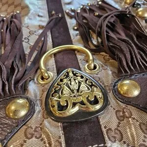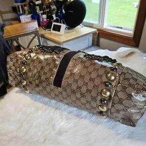 Gucci crystal babouska fringe XL bag in good used condition! One piece of fringe is missing,wear all around top trim & studs have wear seen in pics. still truly a gorgeous bag all not noticeable when carrying! 100% authentic gaurenteed