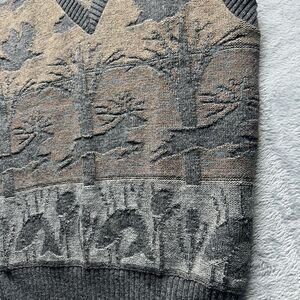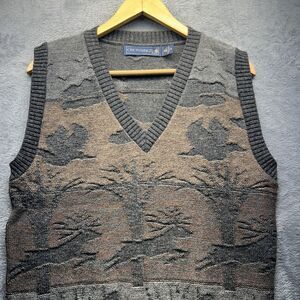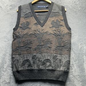 Vintage Wool Vest Mens Medium Gray Sweater Old Money Deer Duck Fishing 90s Y2K