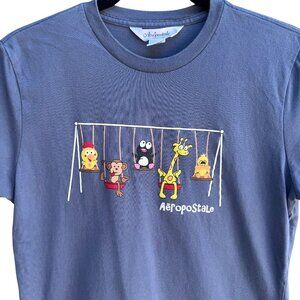 Aeropostale Vintage Y2K Babydoll Animal Swing Graphic Boyfriend Tee Blue Shirt M