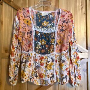 Anthropologie Maeve Peasant Top Size Small Floral Patchwork Cottagecore Boho