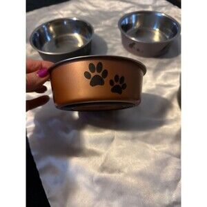 Four cat bowls metal 5 inches round