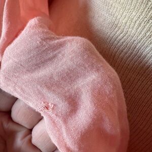 It good used condition. There are a few flaws shown in photos; pilling under arms on sleeves, a small tear in the dress lining (not visible from the outside), and a touch of thinning wear to the bust v boning.