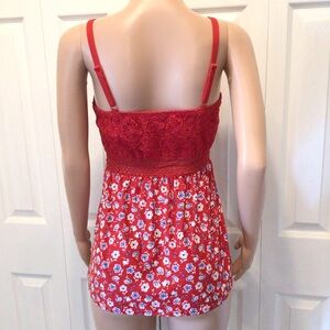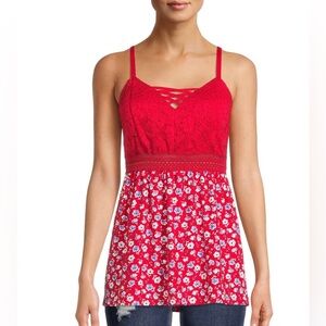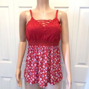 No Boundaries Juniors Red Floral Sleeveless Lace V-Neck Cami Tank Top Size Large. Excellent condition. From smoke free home.