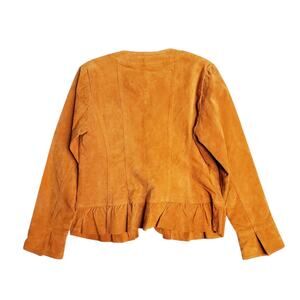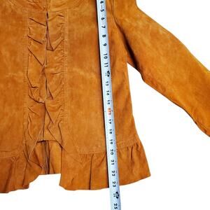 Vintage Suede Leather Jacket Orange Y2k Fairy Boho Ruffle Prosper & Devine - Large