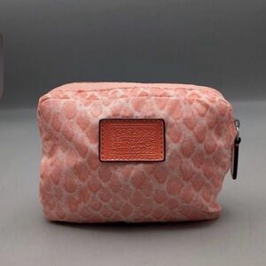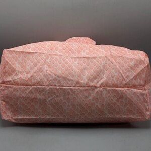this retired design Coach folding tote/bag is a must-have for any stylish woman! The peach signature print, featuring a colorful snake design, is eye-catching and fun. The bag is made of nylon and patent leather, with double handles for easy carrying.