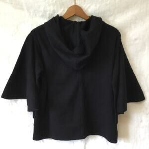 Maeve Black Crop Hoodie Sweater with Cape Sleeves