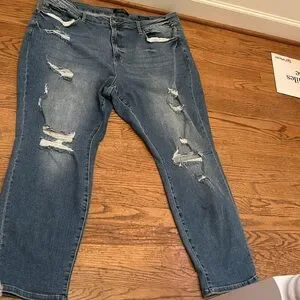 Judy blue boyfriend light blue denim jeans 88404 24w High Waist Destroy Cuffed